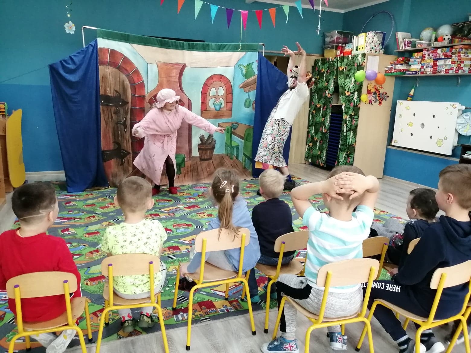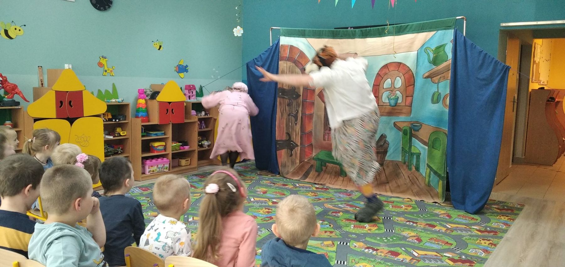 Dziś w Przedszkolu Kangurek w Koszalinie mieliśmy zaszczyt gościć aktorów z Teatralnego Studia Krak-Art z Krakowa, którzy wystawili nam sztukę pt. „Czerwony Kapturek”. To już kolejna wizyta w naszym przedszkolu i jak zwykle aktorzy nie zawiedli oczekiwań naszych Kangurków. Sztuka pełna dynamiki i interakcji z dziećmi gwarantuje wspaniałą zabawę i nie zapomniane wrażenia podczas występów. Dzieciaczki mega zadowolone z nieschodzącym z twarzy uśmiechem! Tymczasem zapraszamy do oglądania zdjęć z wydarzenia i czekamy z niecierpliwością na kolejną wizytę !